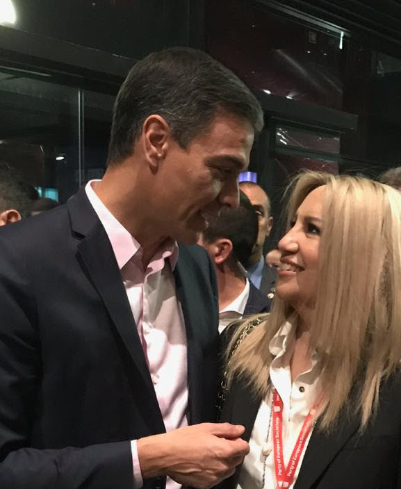 Οι εκλογές στην Ισπανία και στην Ελλάδα και οι ευρωεκλογές, βρέθηκαν στο επίκεντρο της συζήτησης που είχε η πρόεδρος του Κινήματος Αλλαγής Φώφη Γεννηματά με τον Πρωθυπουργό της Ισπανίας και αρχηγό του Ισπανικού Σοσιαλιστικού Εργατικού Κόμματος (PSOE) Πέδρο Σάντσεθ.